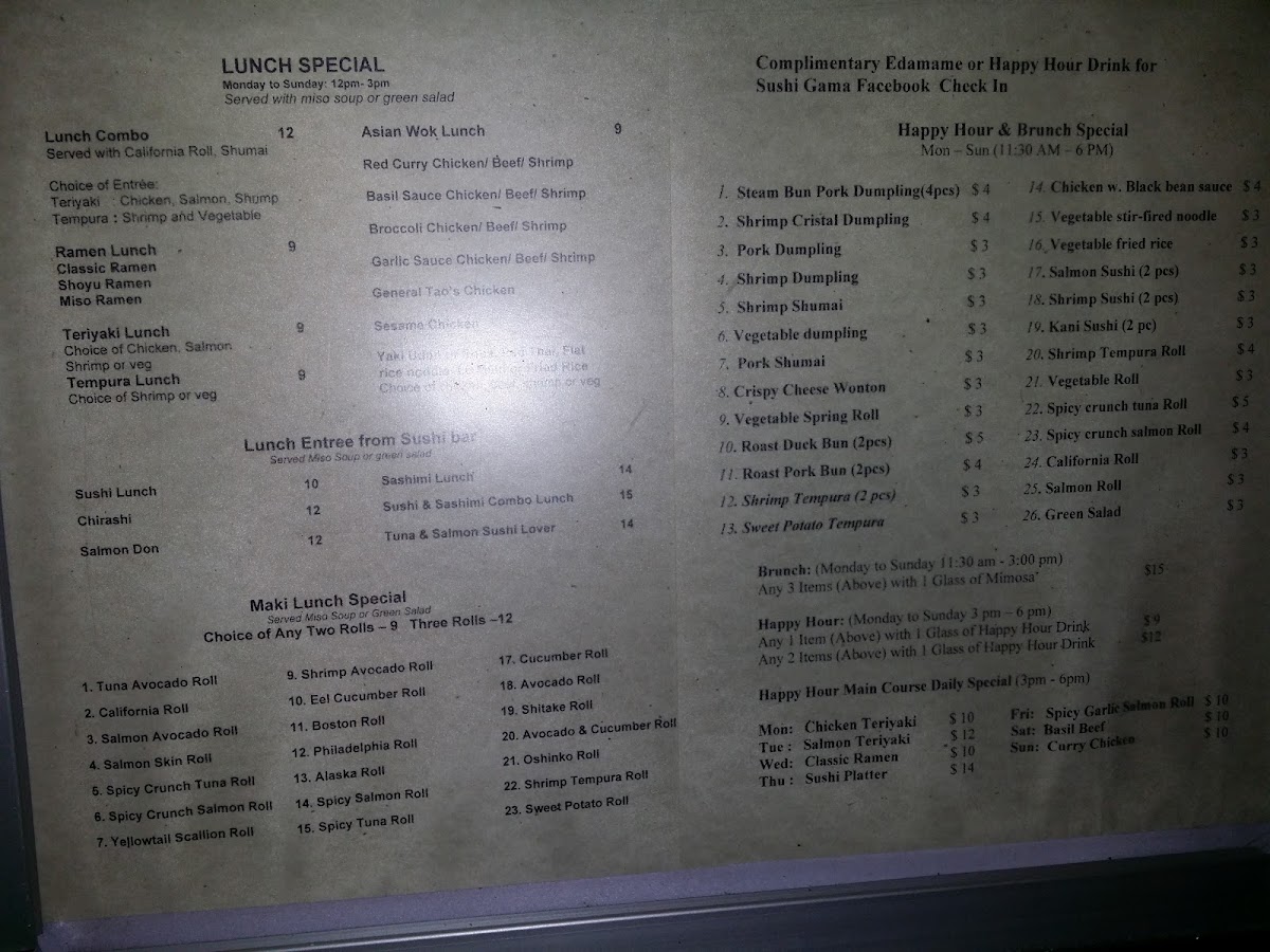 Looking to satisfy your sushi cravings? Look no further than Sushi Gama Menu, where you'll find an impressive array of fresh and flavorful options. Whether you're a fan of classic rolls like the California or spicy tuna, or you're looking to explore specialty rolls packed with unique ingredients, there's something to suit every taste. For those who enjoy a bit of variety, you can dive into the sashimi platters or sample the chef's specials. The menu is designed to offer a perfect balance of traditional favorites and innovative dishes, making it an ideal spot for sushi lovers at any level. Enjoy your meal in a cozy, welcoming setting, where each dish is crafted with care and quality ingredients.